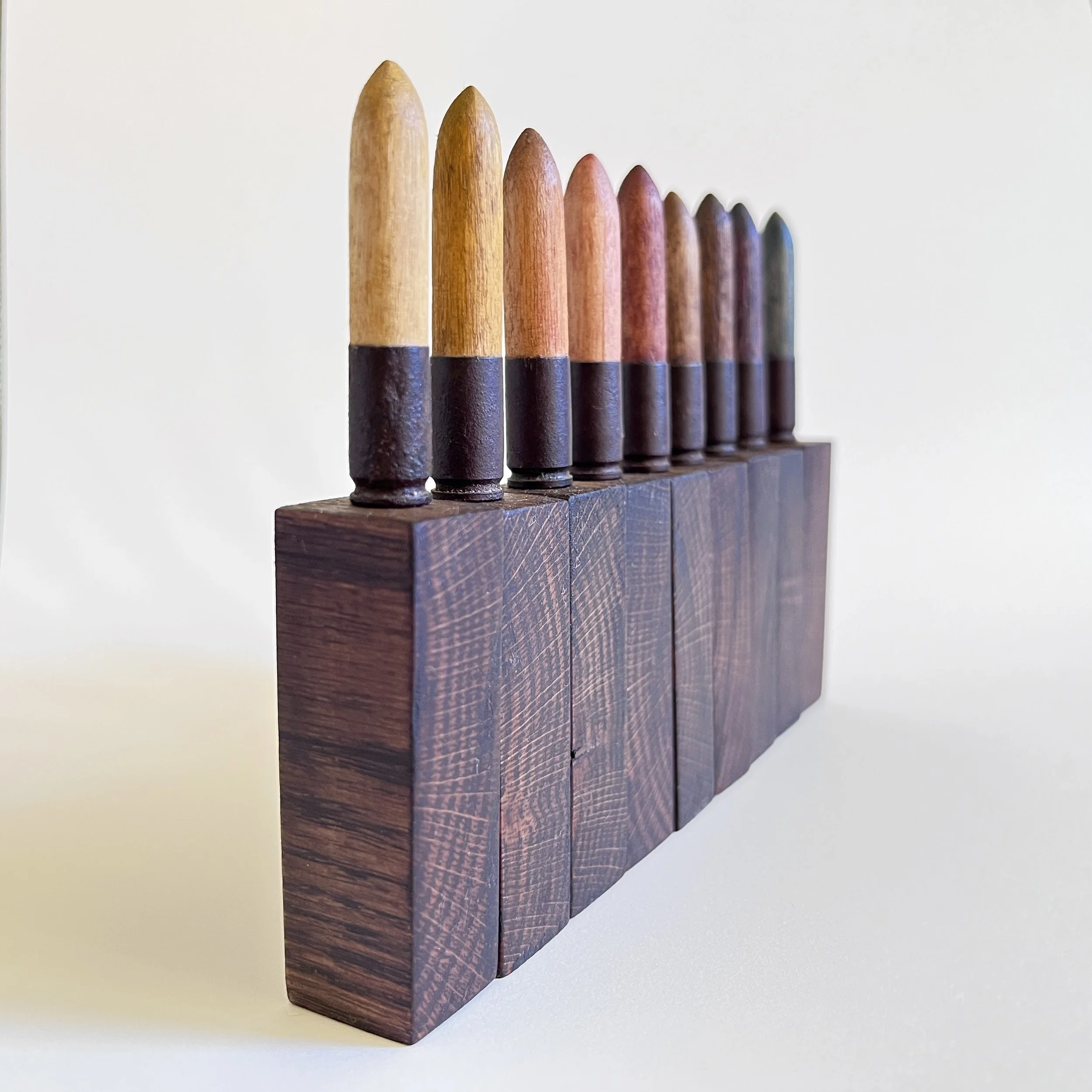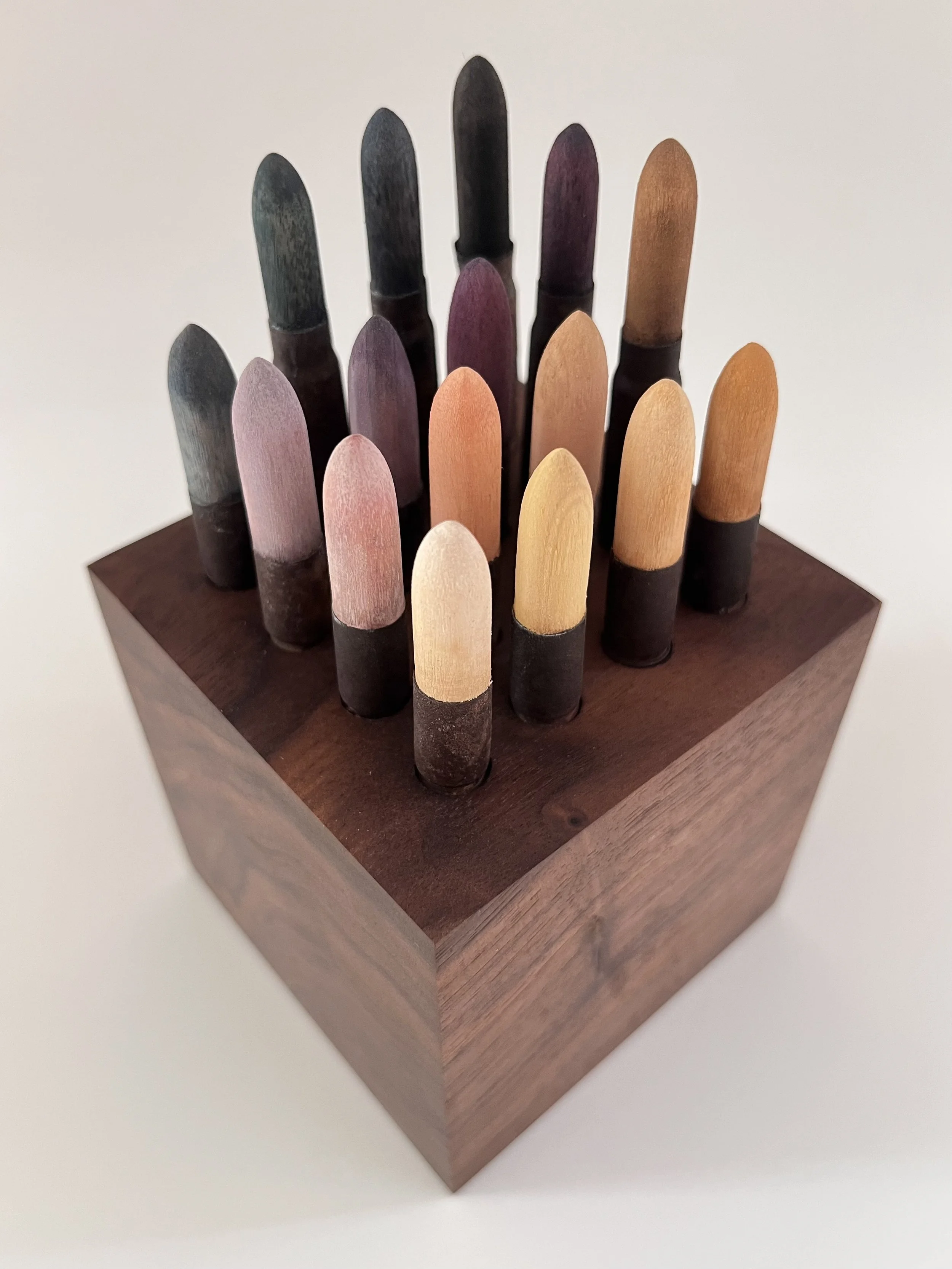 CenotaphsCasings found on threatened Bureau of Land Management land with hand carved coastal oak, painted in handmade inks and regionally found earth pigment