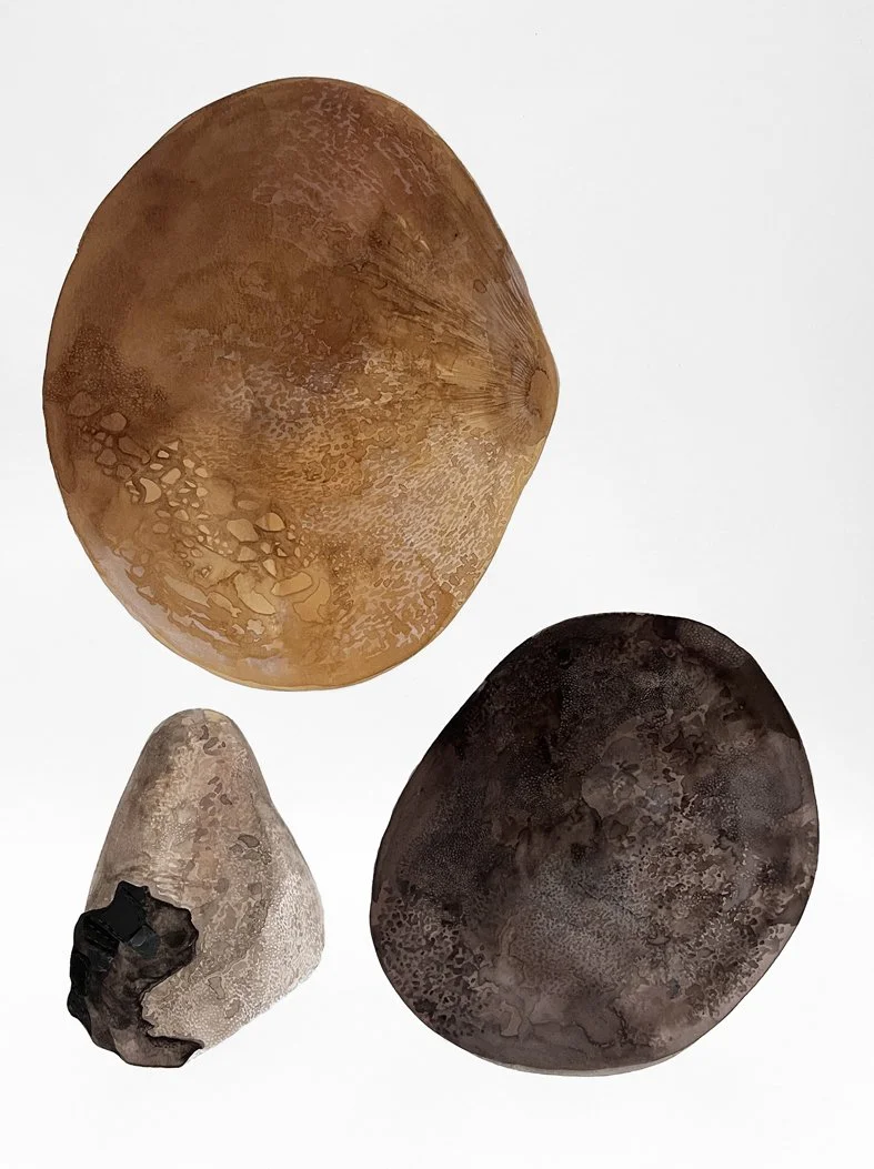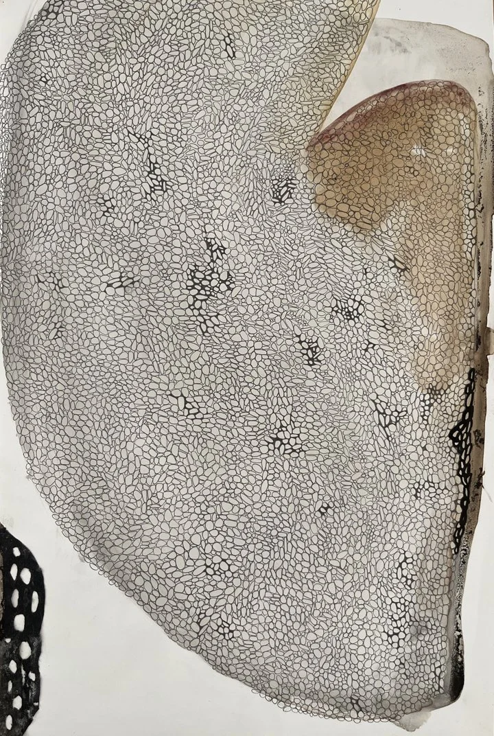 Work in handmade oak gall, pomegranate, avocado, privet, grape and cochineal inks with regionally found earth pigment